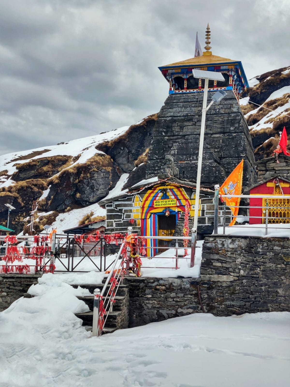 Commencing from the scenic meadows of Chopta, the route ascends to Tungnath—the highest Shivalaya globally—situated at an elevation of 3,680 meters and revered as one of the Panch Kedar shrines.